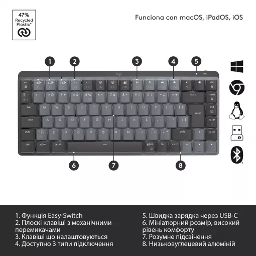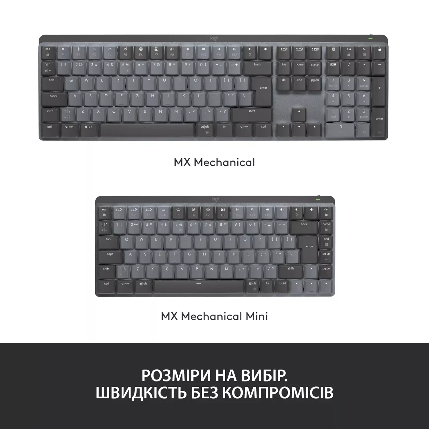 Детальні характеристики Клавіатура бездротова LOGITECH MX Mechanical Mini Minimalist Illuminated GRAPHITE (920-010782).