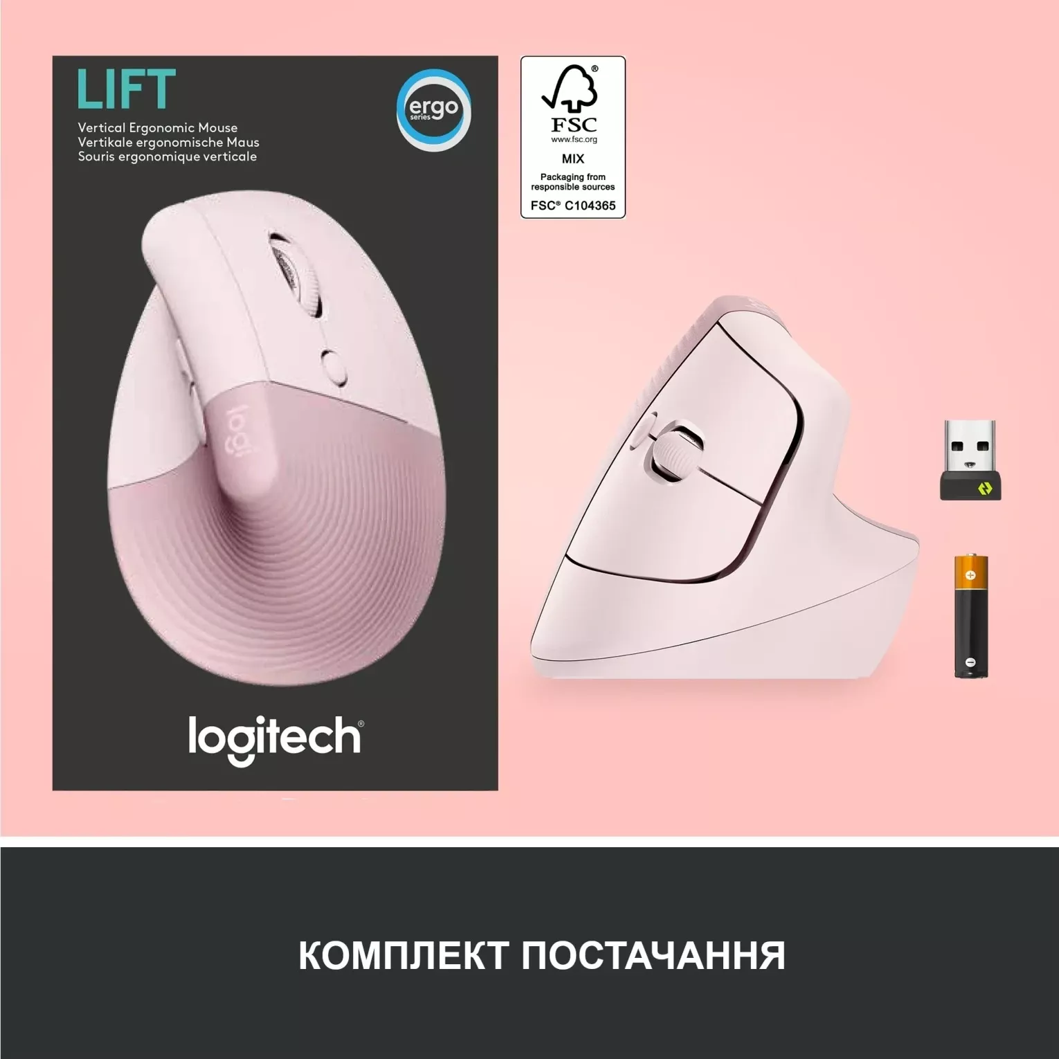 Детальні характеристики Миша бездротова LOGITECH Lift Vertical Ergonomic Mouse ROSE/DARK ROSE (910-006478).