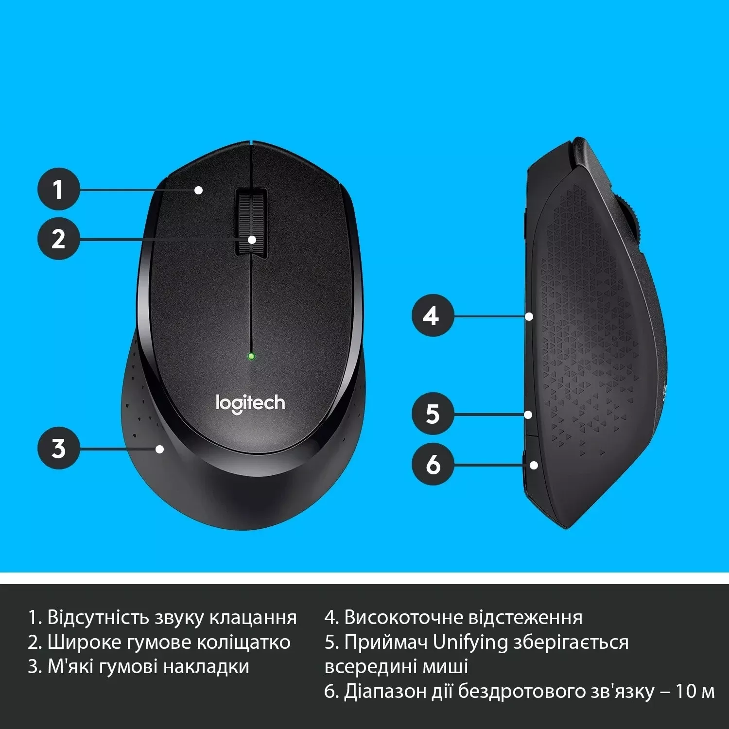 Детальні характеристики Миша бездротова LOGITECH M330 SILENT PLUS BLACK (910-004909).